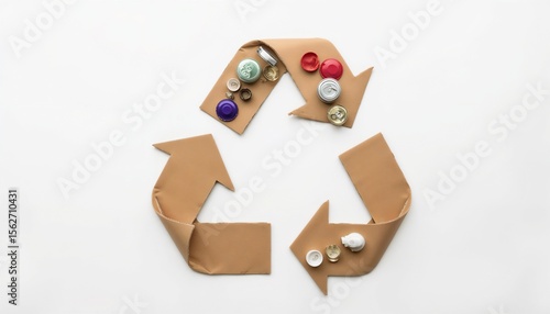 recycling, garbage, ecology, symbol, brown, paper, bottle, cap, buttons, environmentally friendly, sustainability, environment, circular, awareness, reuse, waste, material, craft, arrow, plastic, creative, green, colourful, hand-made, conservation, design, nature, home, bricolage, project, education, eco, planet, organisation, management, society, community, innovation, cleanup, responsibility, art, workshop, team, resource, household