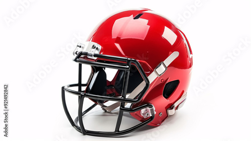 Red American Football Helmet: Red American football helmet isolated on a white background.