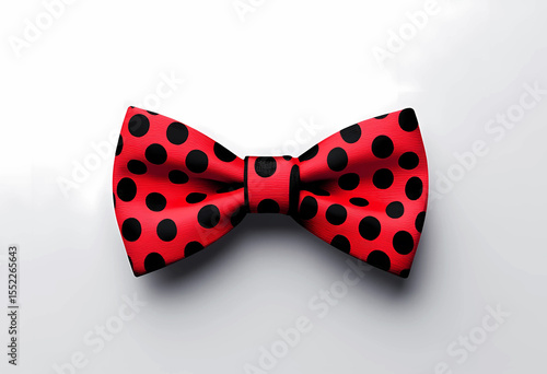 Red and black polka dot bow tie accessory isolated on white background
