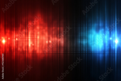 red and blue glowing digital waveform on a dark grid background creating a futuristic and vibrant high-tech design