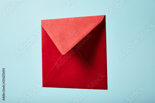 red and colorful envelope on blue background with copy space