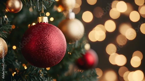 ornament, decoration, holiday, festive, christmas, tree, shiny, bauble, bright, sparkle, seasonal, gold, red, glistering, joy, celebration, warmth, light, beauty, tree branch, bokeh, background, traditional, winter, cheer, event, design, nature, classic, family, home, love, spirit, nubes, gift, cosy, atmosphere, gathering, night, happiness, joyfulness, playfulness, colours, arrangement, holiday spirit, scene