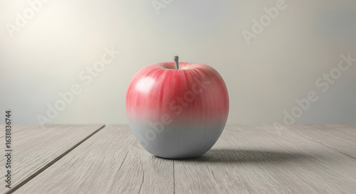 Red and Gray Apple on Wooden Surface - Minimalist Still Life