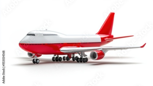 Red and white commercial airliner jet aircraft on white background with details of different aviation components