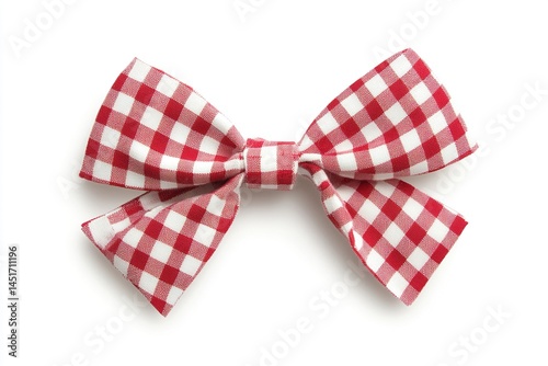 Red and white gingham bow on a white background