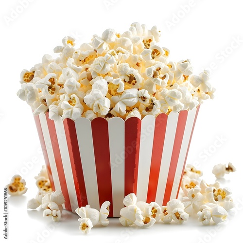 Red and White Striped Popcorn Bucket with Overflowing Popcorn