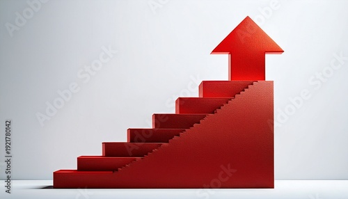 arrow, upwards, stair, red, isolated, white, growth, success, progress, direction, business, goal, climb, achievement, improvement, increase, concept, finance