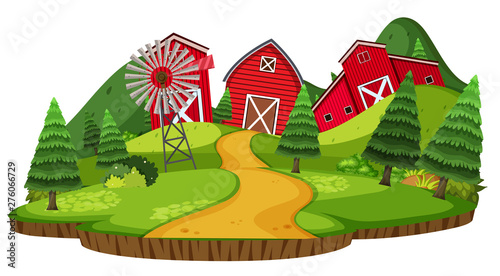 red, barn, farm, windmill, nature, natural, pathway, background, scene, pine, tree, wallpaper, wood, wood, illustration, graphic, picture, clip art, clip art, clip, art, drawing, image, vector