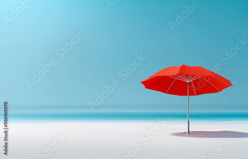 beach, umbrella, sea, sunny, day, red, sand, ocean, sky, summer, vacation, coastline, horizon, sunlight, relaxation, tropical, nature, outdoors, blue, wave, shore, travel, bright, holiday, seascape, paradise, resort, leisure, seacoast, warm, scenery, landscape, beautiful, peaceful, coastal, tranquil, sun, enjoyment, summer