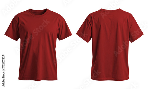 Red Blank T-Shirt Mockup Isolated on White Background - Front and Back View