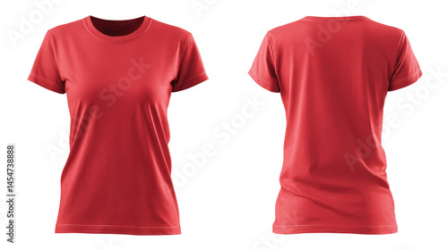 red, t-shirt, blank, template, front view, backview, apparel, fashion, casual attire, short sleeve, isolated, cotton, design, style, clothes rack, plain, minimal, modern, soft, feminine, simple, comfortable, vibrant, wearable, clean, basic, unisex, elegant