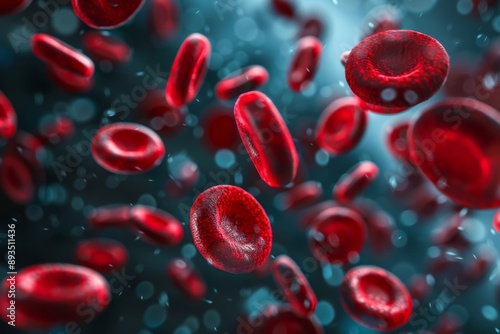 Red blood cells in vein. Blood cells flowing through a capillary bloodstream. Medicine and biology