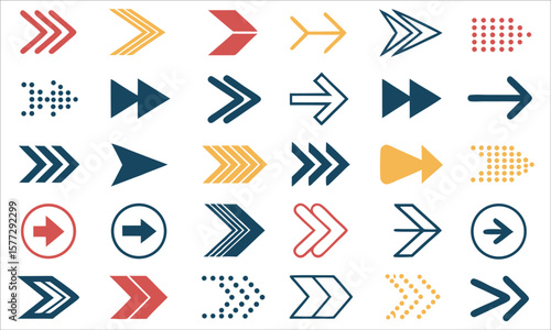 arrow, direction, forward, next, right, symbol, navigation, graphic, design, red, blue, yellow, collection, set, icon, pointer, movement, progress, media, play, fast forward, transport, communication, vector, illustration, simple, modern, clean, geometric, shape, indicator, signs, icon, arrow, web, buttons, logotype, business, element, paper, cyberspace, up, colours, cursor, pattern