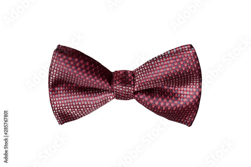 Red bow tie for satin fabric tuxedo isolated on white background.