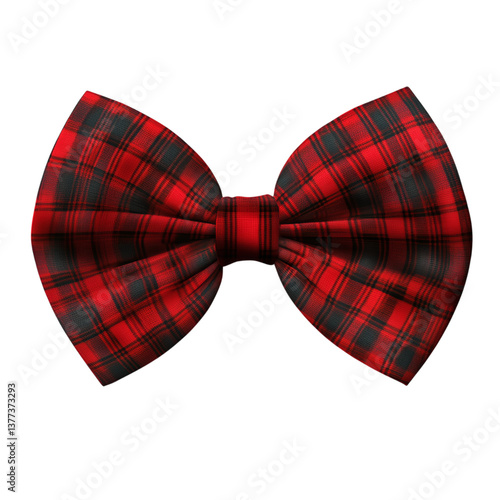 red bow ties with classic Scottish patterns isolated on transparent background.