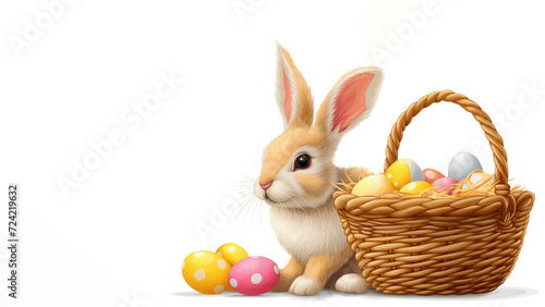 egg, rabbit, rabbit, easter, basket, copy space, greeting, card, painted, white, isolated, background, illustration, cute, holiday, hare, adorable, funny, colourful, cartoon, animal, near