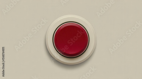 Red button on a cream-colored surface.