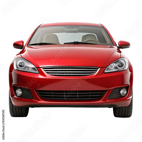Red Car Front View – Bold and Sporty Vehicle Design on Pure White Background