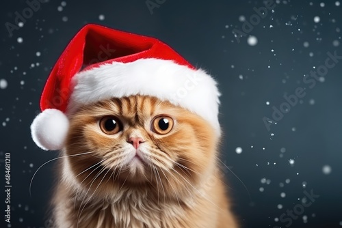 cat, christmas, snow, hat, santa, dark, red, cute, fluffy, joyful, happiness, background, celebration, animal, funny, portrait, christmas, white, pet, winter, kitten, pet