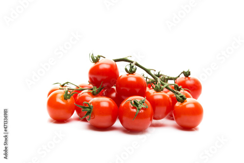 Red cherry tomatoes on a branch isolated on a white background