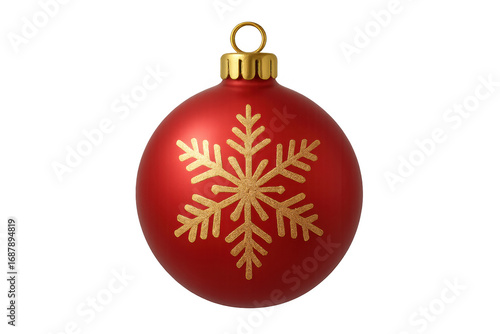 christmas, ball, ornament, decoration, snowflake, gold, red, holiday, festive, winter, celebration, christmas, season, december, hanging, bauble, glistering, design, element, three-dimensional, render, realistic, new, year, eve, traditional, greeting, card, invitation, party, joy, magic, sparkle, shiny, decorative, object, symbol, icon, graphic, template, space, copy, transparent, background, isolated, white
