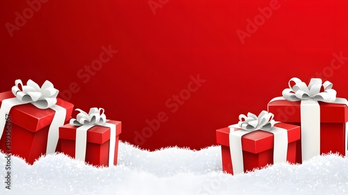 Red Christmas Gifts Snow Background Winter Holiday Presents