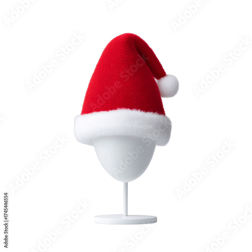 Red Christmas Hat on a White Display Stand for Holiday Season and Festive Celebrations