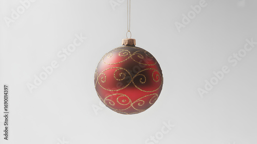 Red christmas ornament isolated on white background with golden swirls