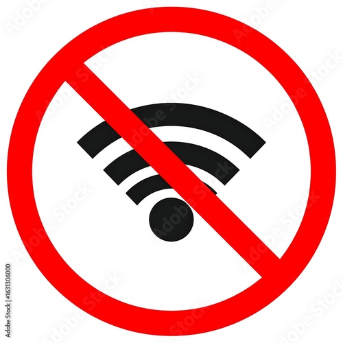 Red circle and diagonal line crossing out a Wi-Fi symbol
