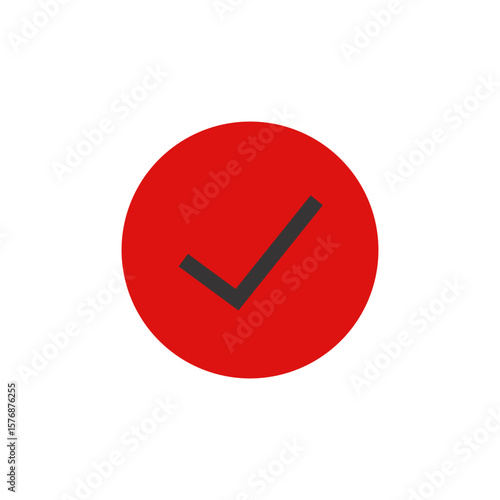 Red circle displays a dark check mark symbol.