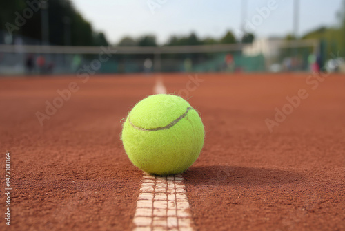 red, clay, tennis, court, yellow, ball, white, chalk, line, baseline, match, practice, morning, afternoon, natural light, fence, dynamic, vibrant, colours, surface, anticipation, art, background, texture, pattern, design, colourful, creative, modern, geometric, shape, line, concept, energy, motion, graphic, visual, futuristic, minimal, decorative, trendy, stylish, elegant, bright, gradient, contrast, innovative