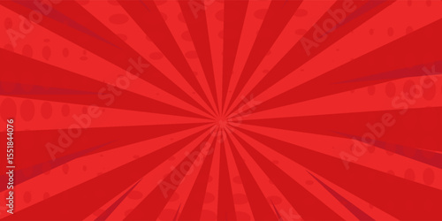 Red comic sunburst effect background with halftone. pop art comic-style vector background