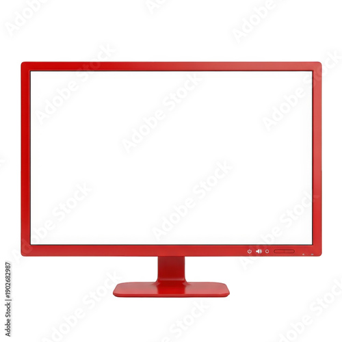 monitor, computer, red, screen, blank, transparent, background, display, desktop, technology, modern, isolated, electronic, device, contraption, office, equipment, hardware