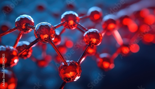 molecular, structure, red, crystal, science, chemistry, atomic, physics, biochemistry, connection, bond, lattice, network, three-dimensional, illustration, design, geometric, complex, intricate, glowing, light, dark, blue, background, abstract, technology, digital, pattern, scientific, datum, model, representation, composition, research, detail, closeup, innovation, modern