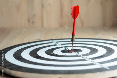 Red dart arrow hit the center target of dartboard metaphor marketing competition concept