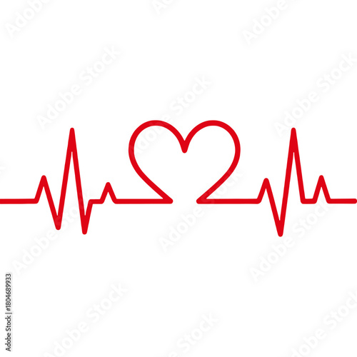 Red electrocardiogram (ECG) line forming a heart shape in the center, symbolizing heartbeat, love, cardiology, and heart health monitoring