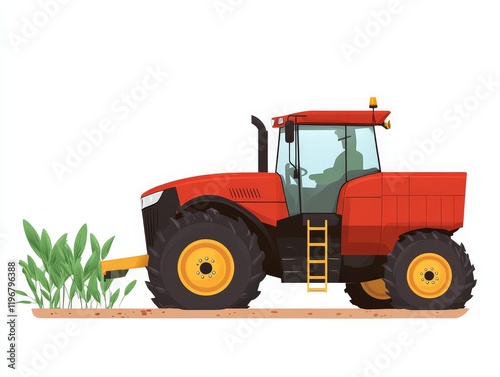 Red farming tractor with a harvest trailer on a clean white background emphasizing agricultural productivity crop management and eco friendly rural equipment