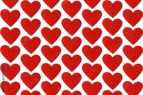 Red felt hearts isolated on white background. Valentines day pattern.