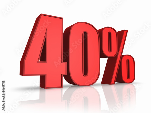 40, three-dimensional, red, 40, percent, percentage, number, tags, economy, finance, calculation, isolated, market, marketing, mathematic, rate, render, savings, signs, statistic, symbol
