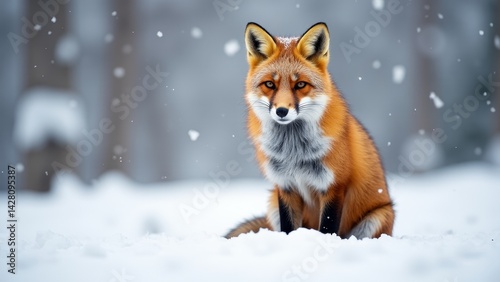 red fox, winter, snow, snowfall, animal, wildlife, mammal, portrait, outdoors, nature, cold, forest, fur, cute, beautiful, wild, fauna, winter landscape, snowy, landscape, scene, scenery, one animal, sitting, alert, predator, carnivore, red, white, orange, grey, furry, wild animal, seasonal, climate, environment, closeup, day, outside, no people, zoology, animal portrait, north america