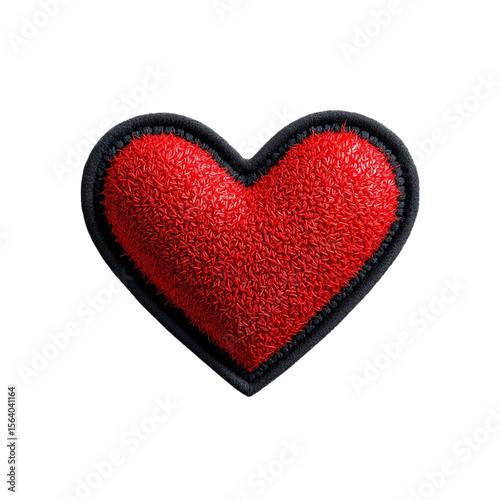 Red Fuzzy Heart Patch on Black Background close up