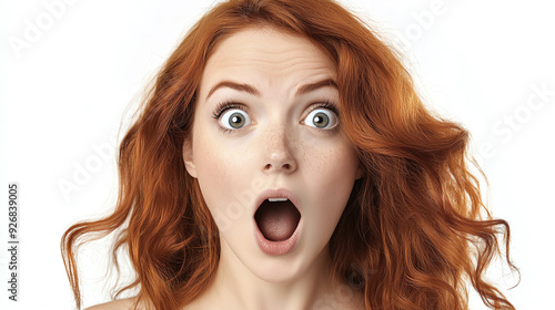 ai, image, concept, conceptual, illustration, red, hair, long, woman, girl, lady, face, portrait, eye, beautiful, young, fashion, white, background, expression, surprise, surprising, advertising, charme, beauty, person, mouth, smiling, smile, people, teeth, model, tongue, scream, screaming, 1, skin, eye, emotion, lip, laughing, funny, closeup