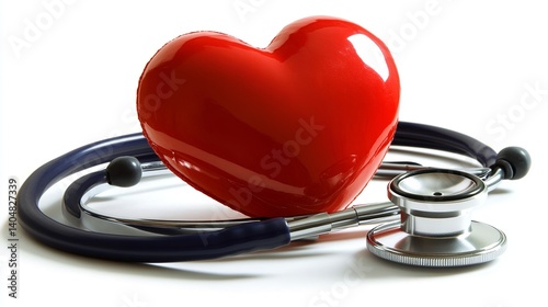Red heart and stethoscope for medical cardiology and health care concept on white background image stock photo