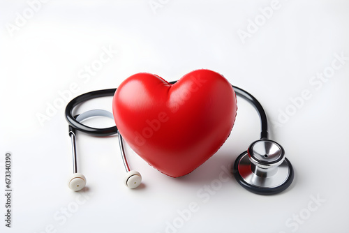 Red heart love-shaped with doctor's stethoscope on a white background,