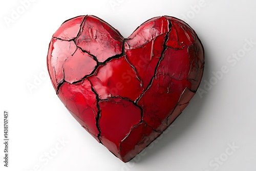 broken heart, red heart, crack, sculpture, heartache, love, pain, damage, fragility, human relationships, abstract, symbol, white background, emotional