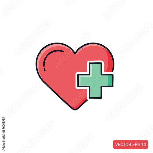 Red Heart with Medical Cross Symbol