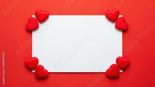 Red hearts frame blank white paper on a vibrant red background for valentines day