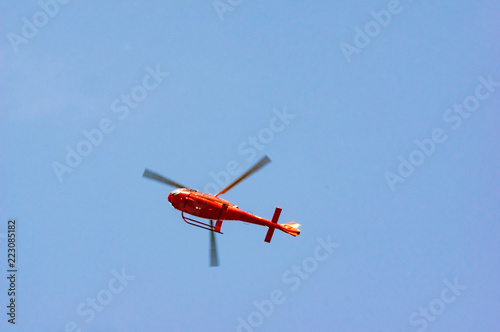 helicopter, aircraft, sky, flight, aeroplane, fly, flying, air, transportation, aviation, blue, plane, transport, rescue, chopper, travel, propeller, rotor, red, emergency, military, engine, jet, white, pilot