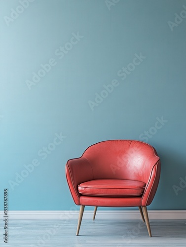 armchair, red, leather, blue, wall, interior, design, home, decor, furniture, inspiration, cosy, modern, scene, room, style, wooden, floor, light, colours, background, empty, space, studio, nobody, indoor, contemporary, minimalist, simple, elegant, comfortable, vintage, retro, classic, bright, clean, serene, calm, peaceful, soft, pastel, airy, fresh, inviting, stylish, artistic, graphic, visual