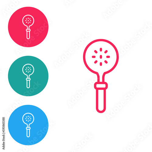 Red line Spatula icon isolated on white background. Kitchen spatula icon. BBQ spatula sign. Barbecue and grill tool. Set icons in circle buttons. Vector